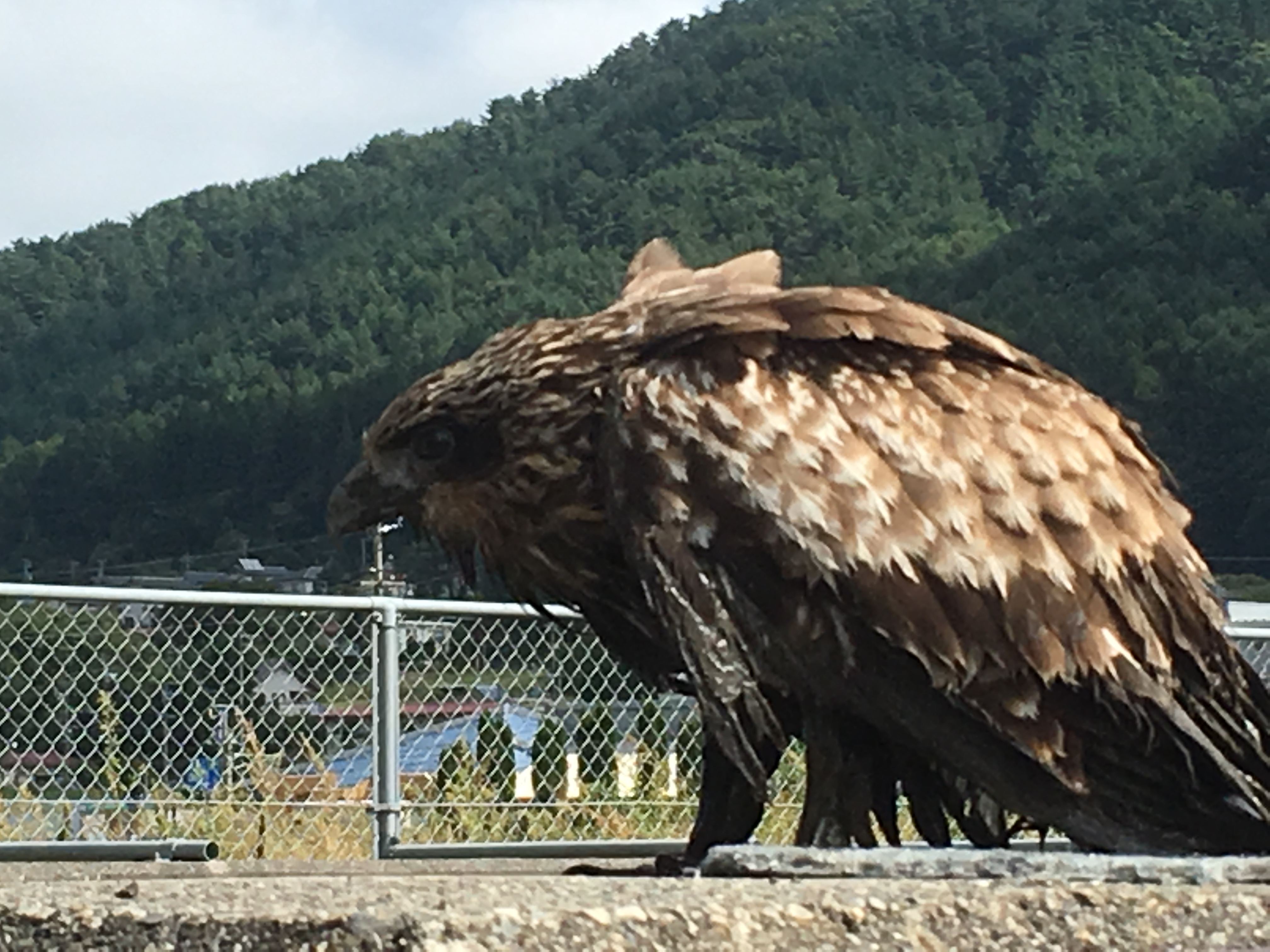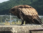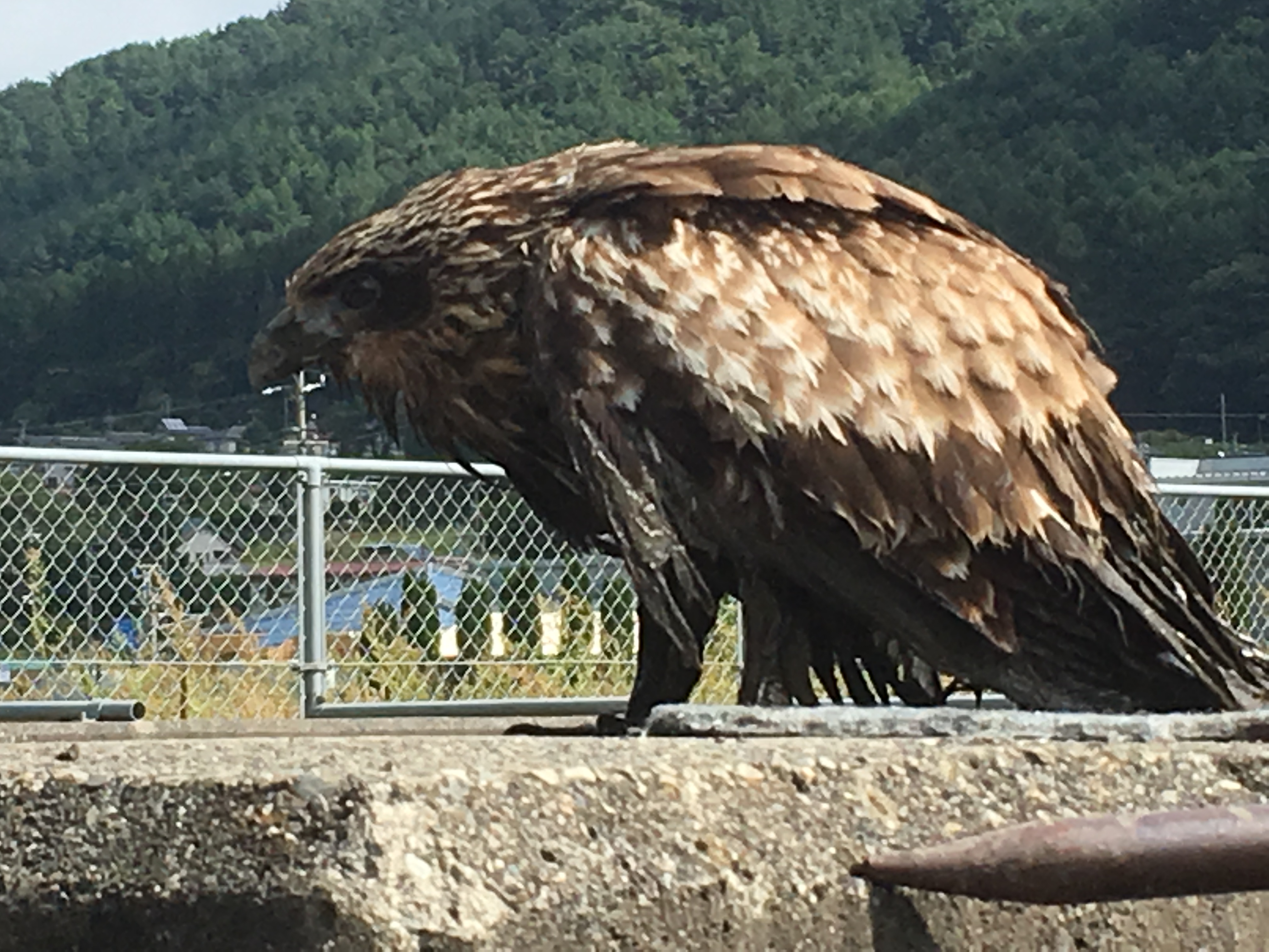 泥まみれで飛べず、乾かしている トンビ?
