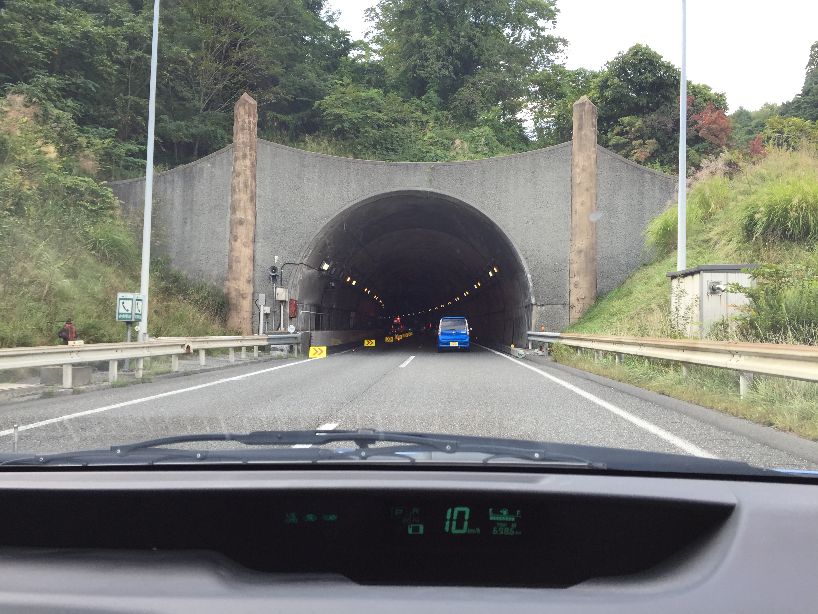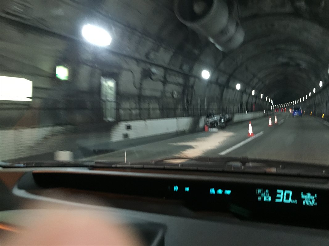 長野高速道路 事故渋滞 岡谷市「塩嶺(えんれい)トンネル」=入り口に御柱(過去に使った本物らしい)