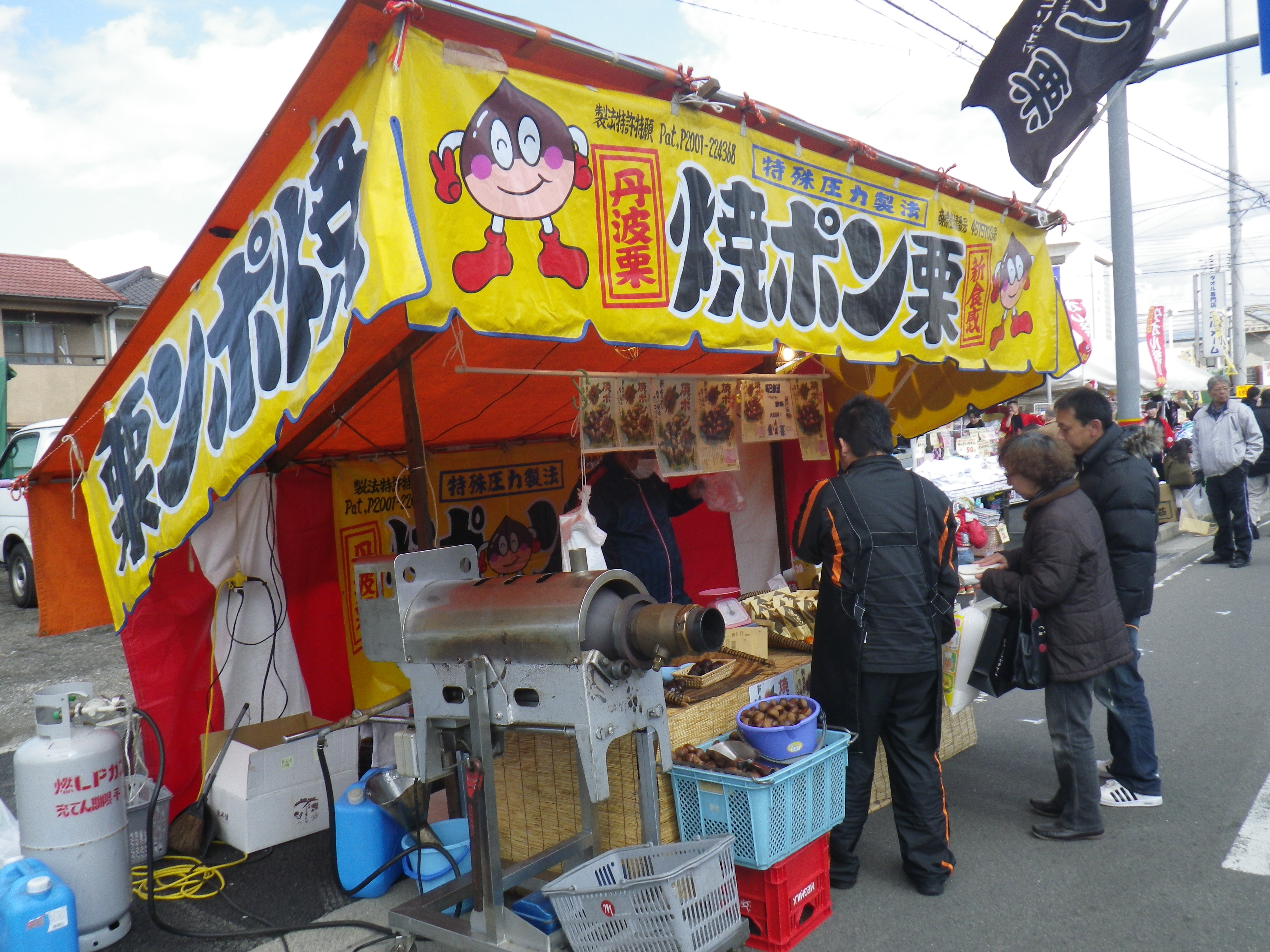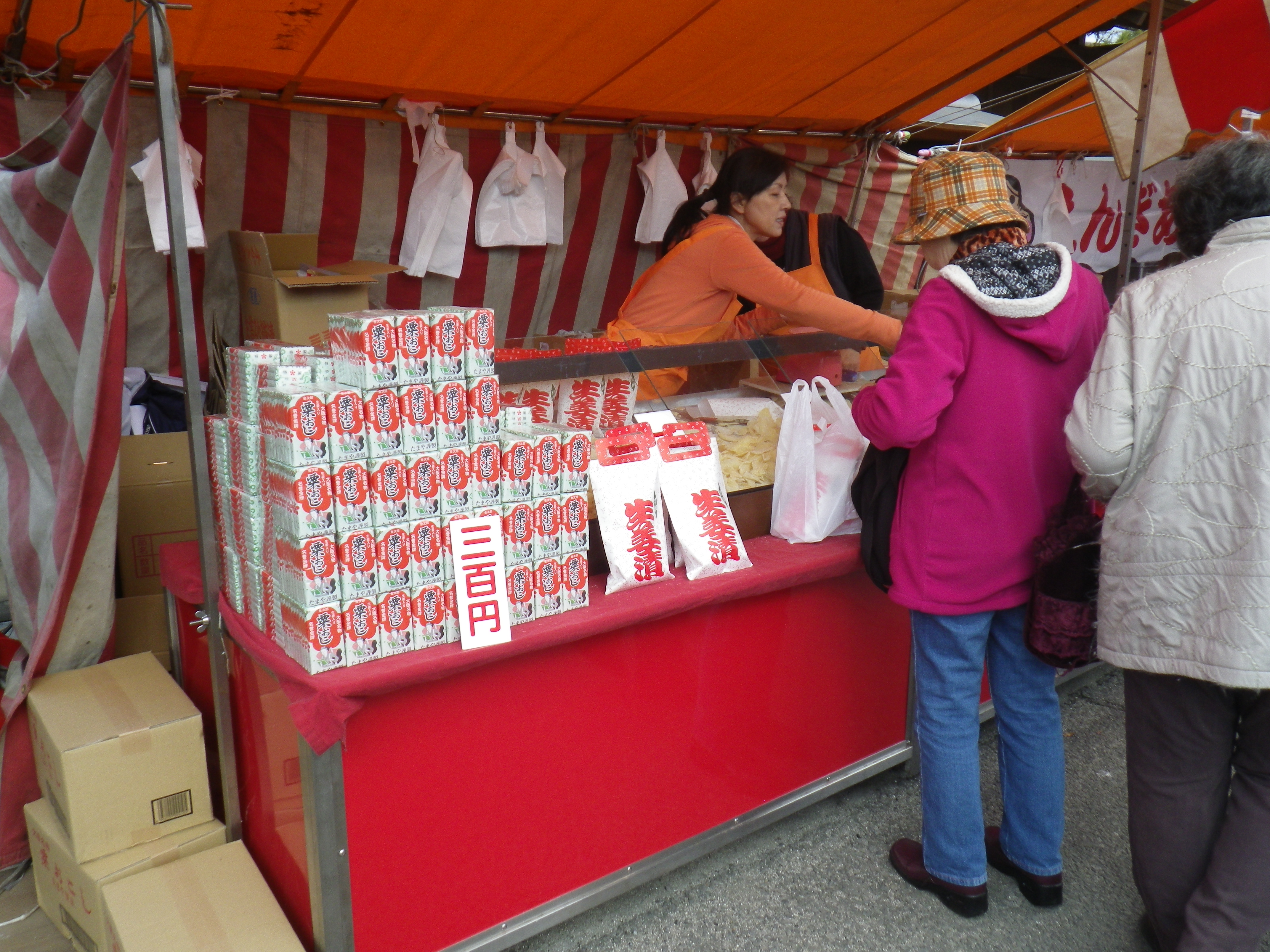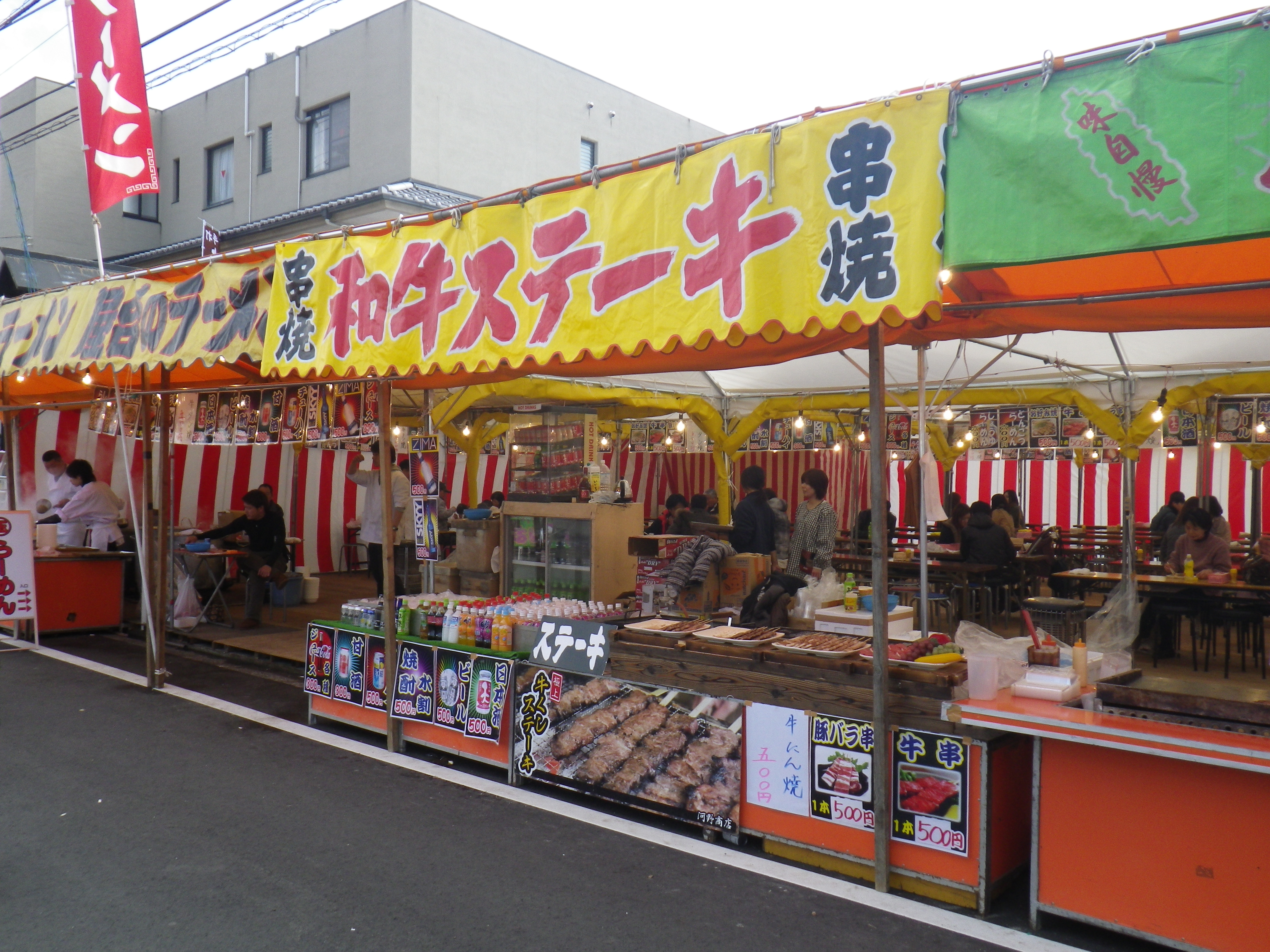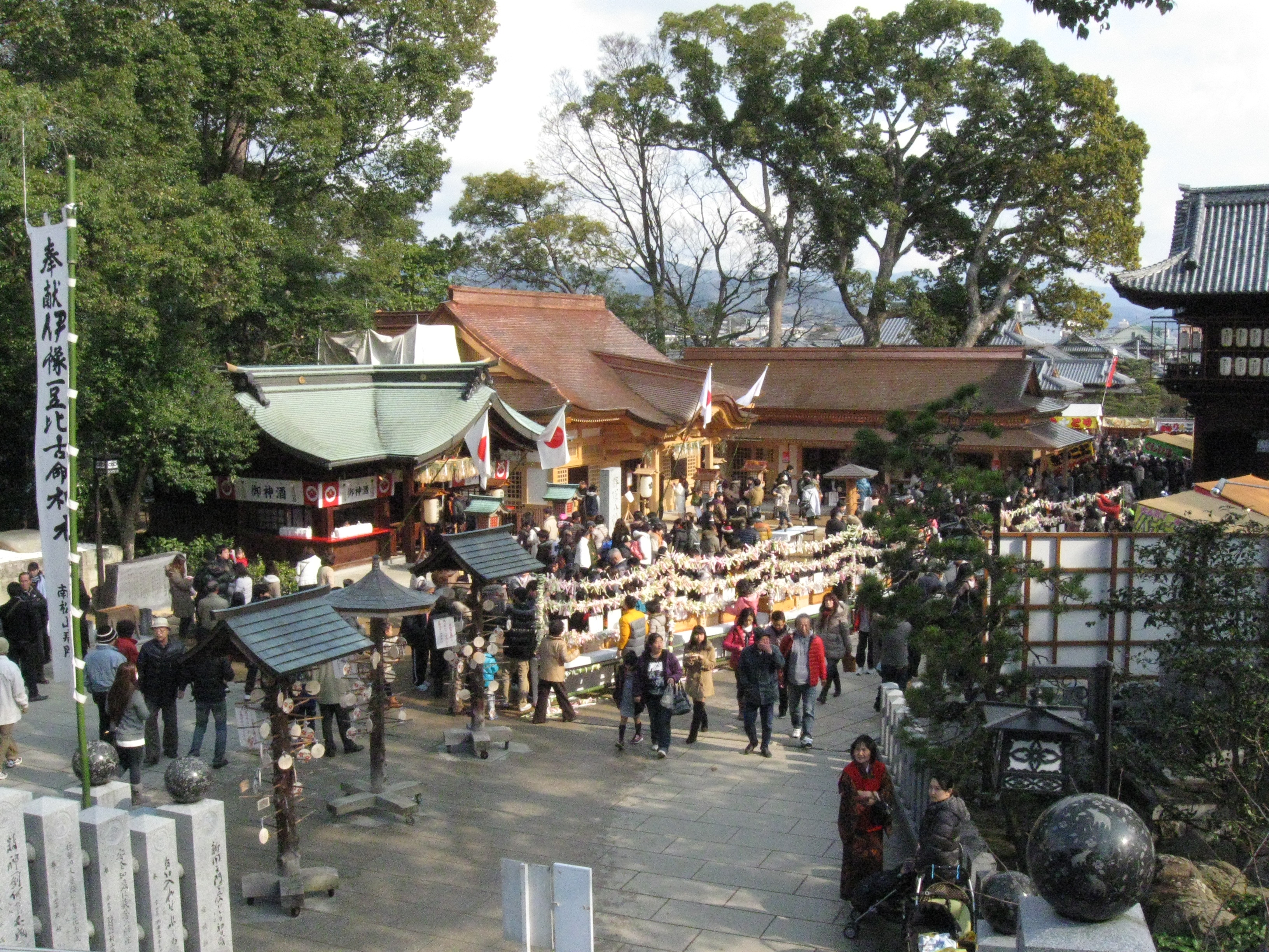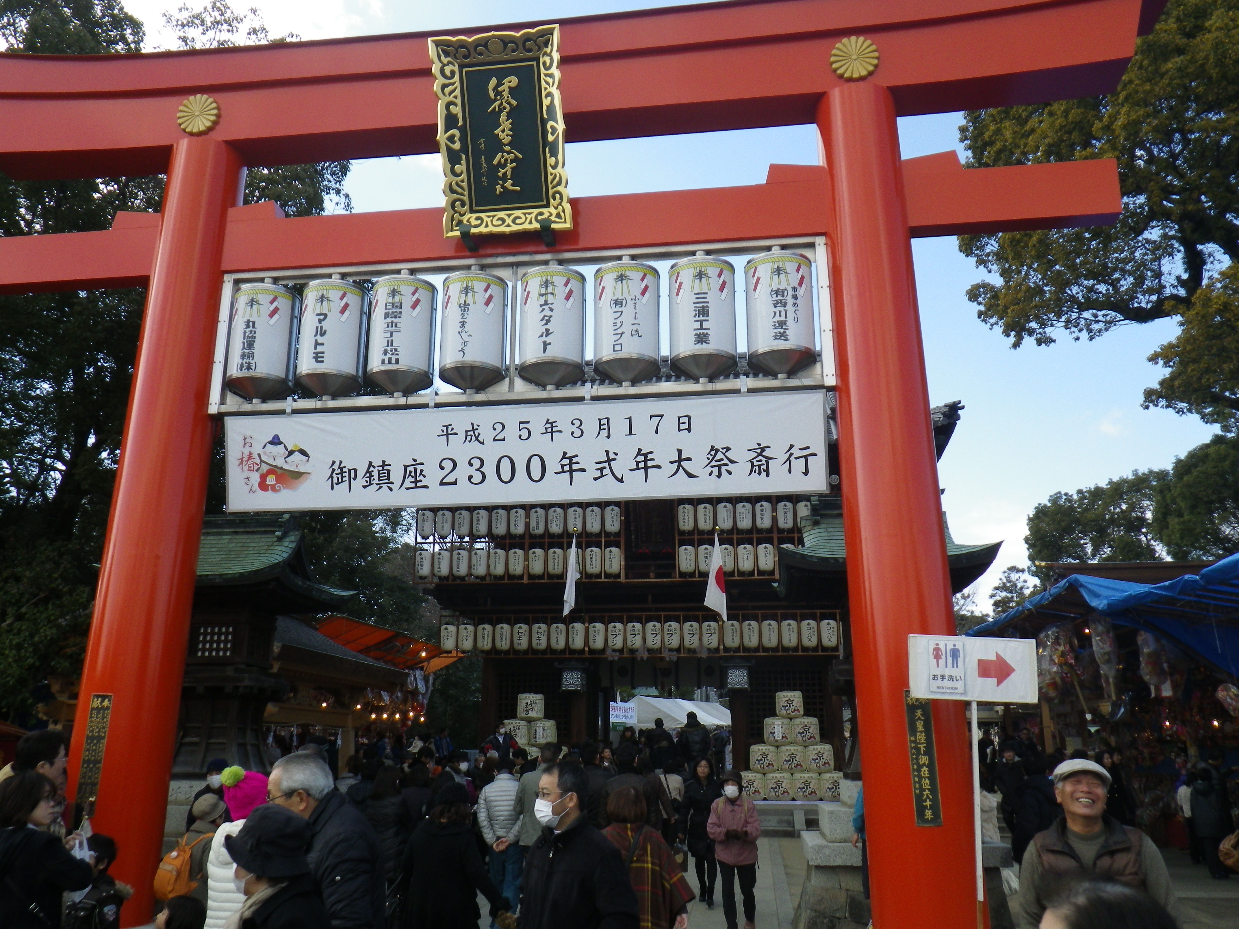 国道33号線交叉点から神社までの約1Kmの県道と平成15年に開通した「はなみづき通り」交叉点から神社まで約500mの県道は、全面交通遮断され、その県道両側に約800店の露店が立ち並ぶ状は圧巻です。