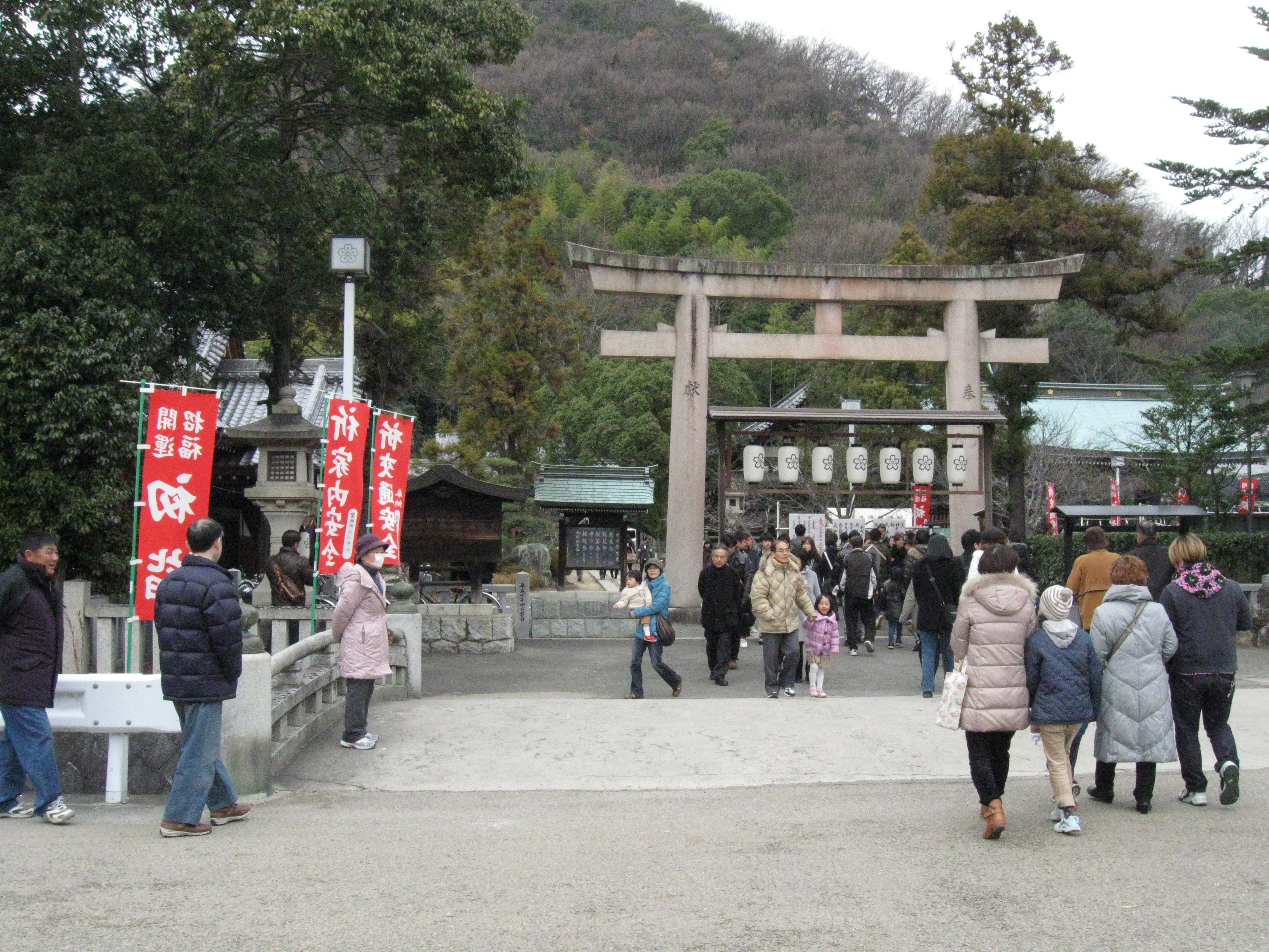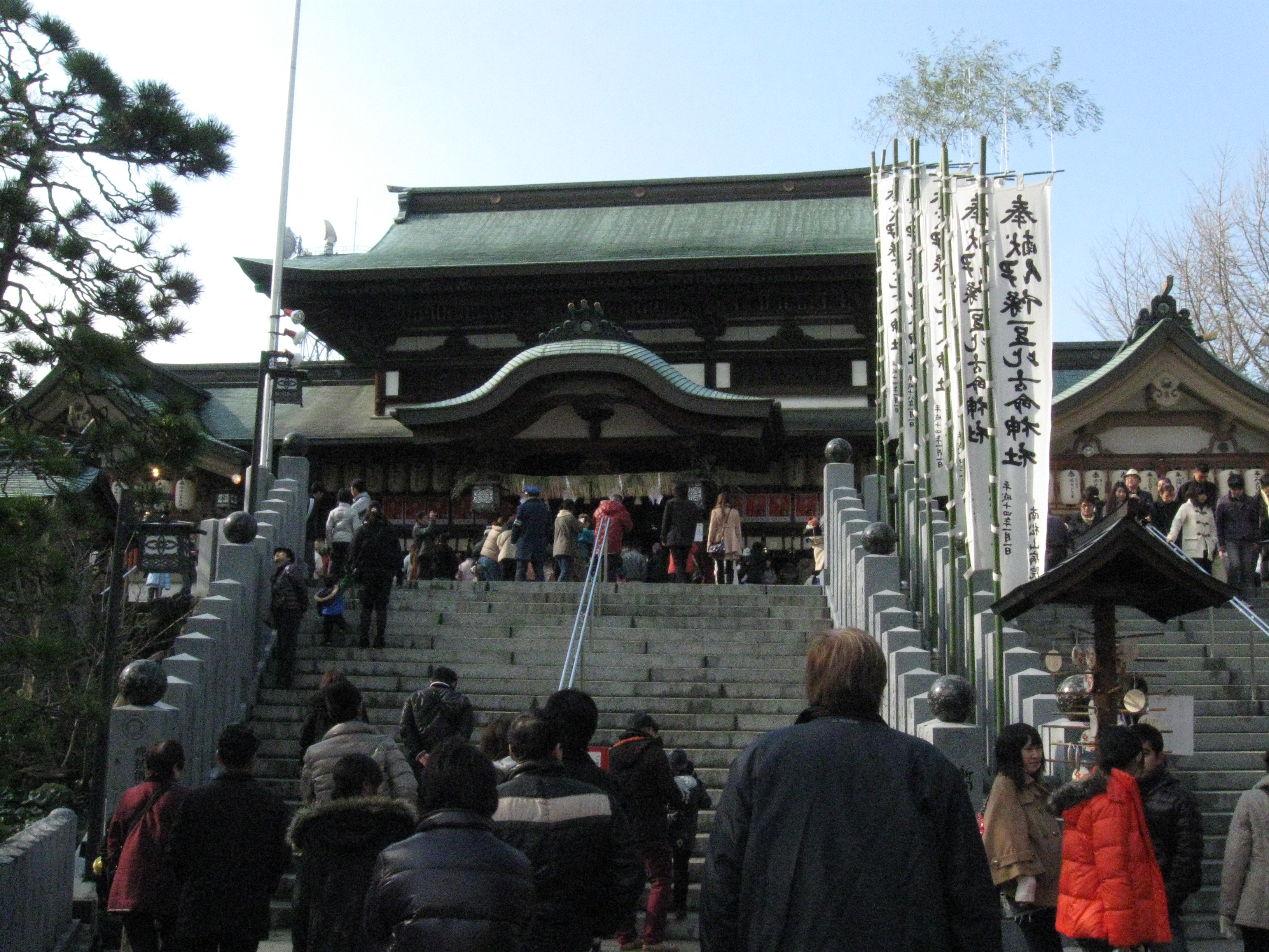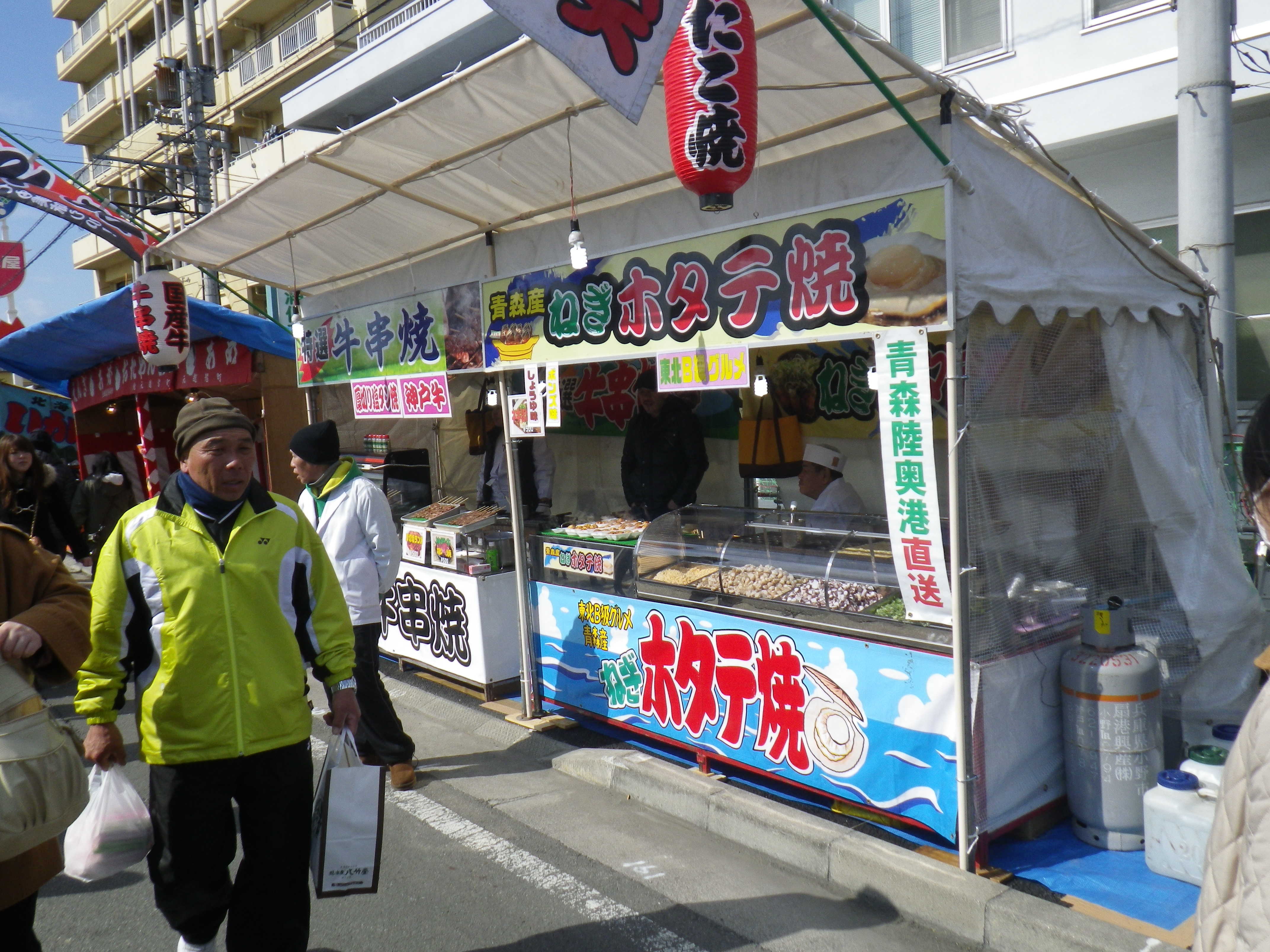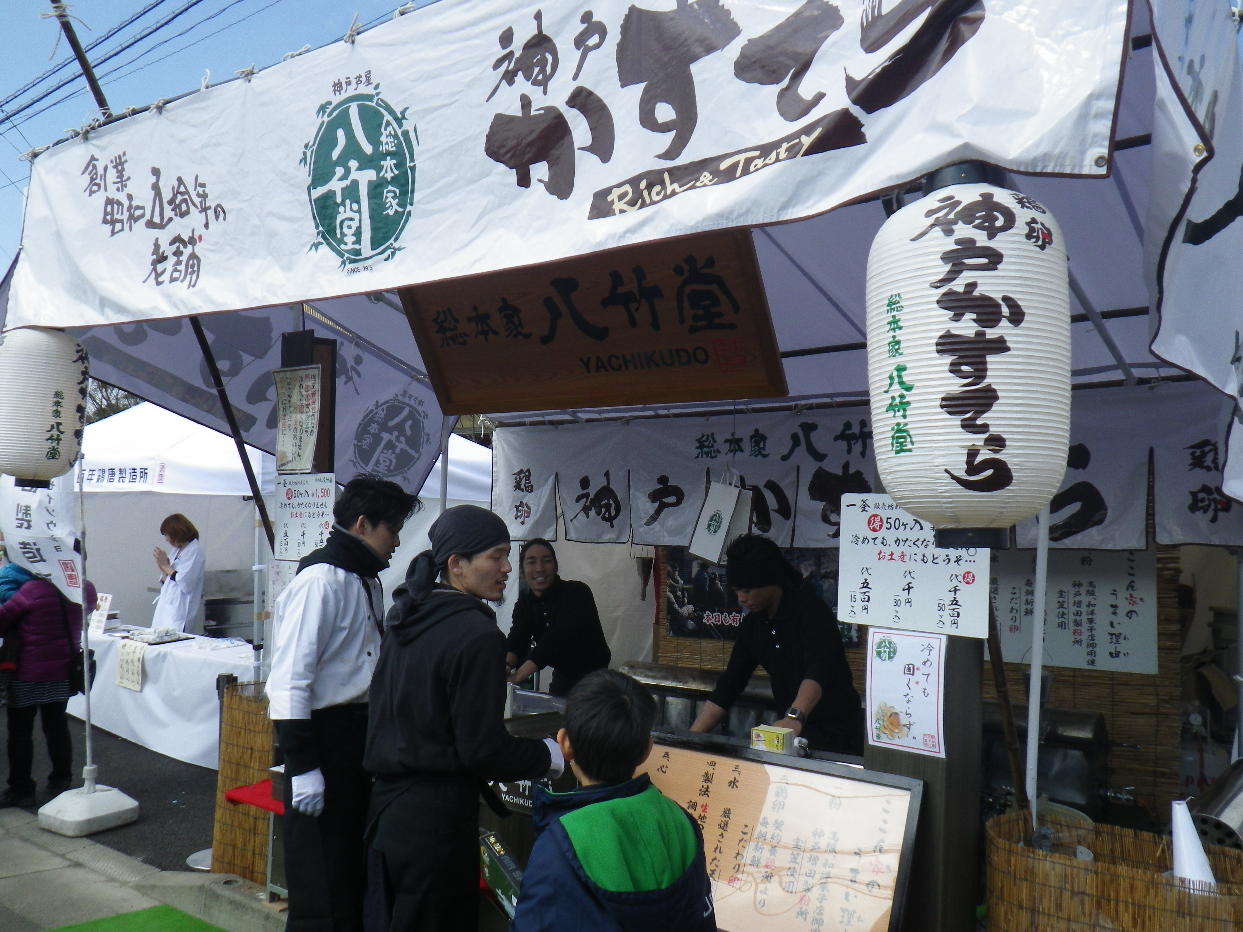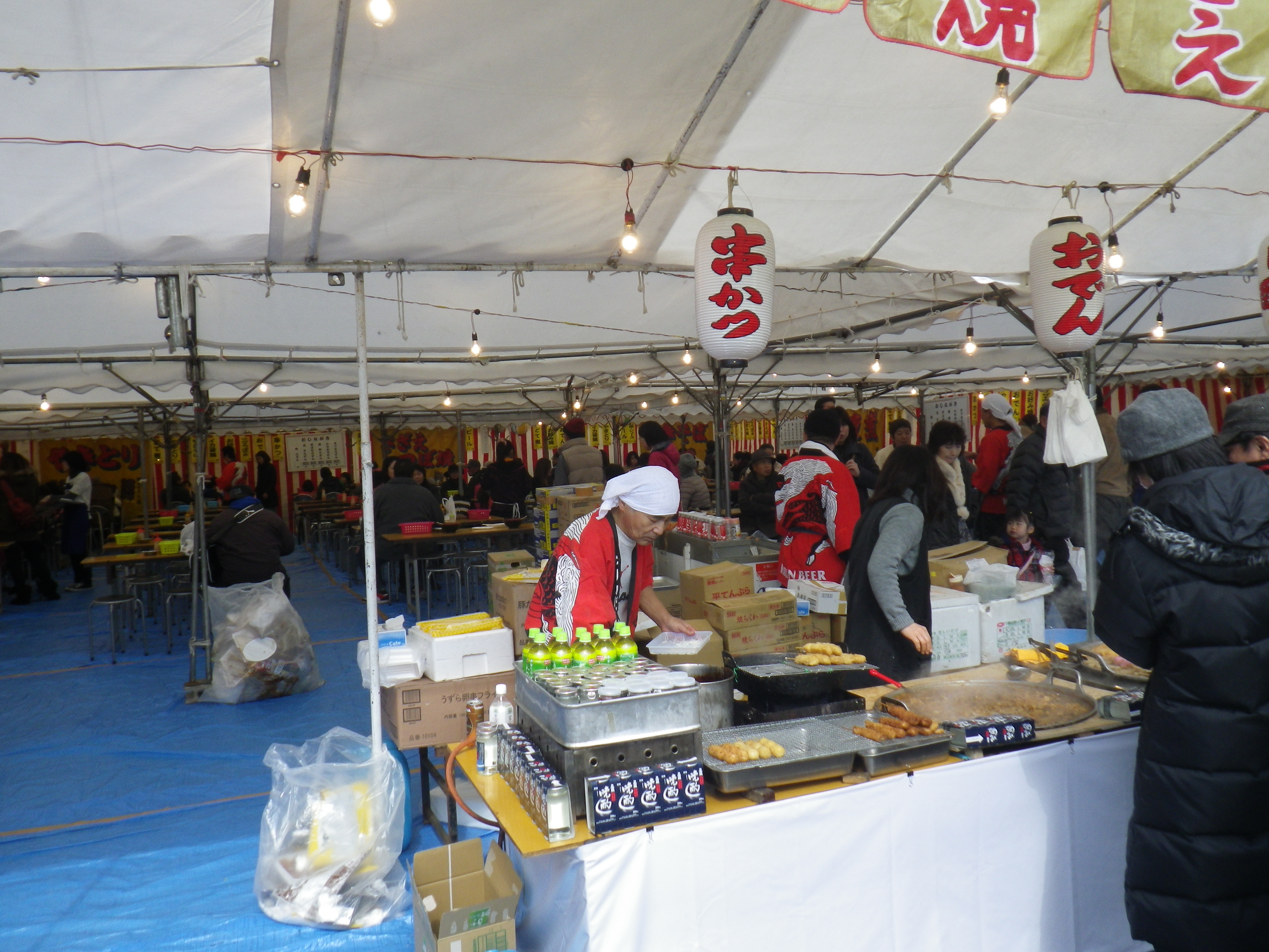 国道33号線交叉点から神社までの約1Kmの県道と平成15年に開通した「はなみづき通り」交叉点から神社まで約500mの県道は、全面交通遮断され、その県道両側に約800店の露店が立ち並ぶ状は圧巻です。