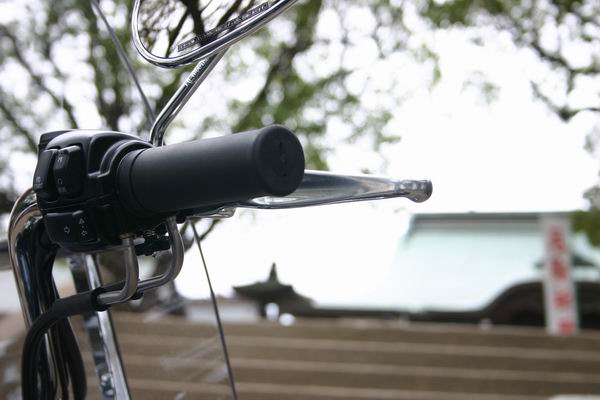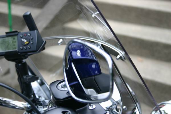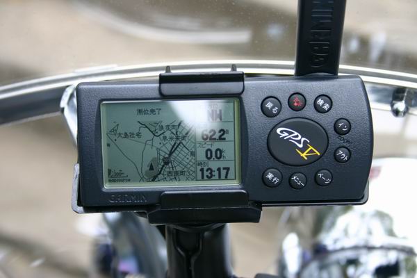 ハンドルパイプに取り付けているのはGPS(カーナビ)です。